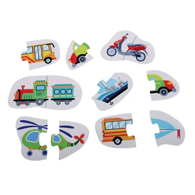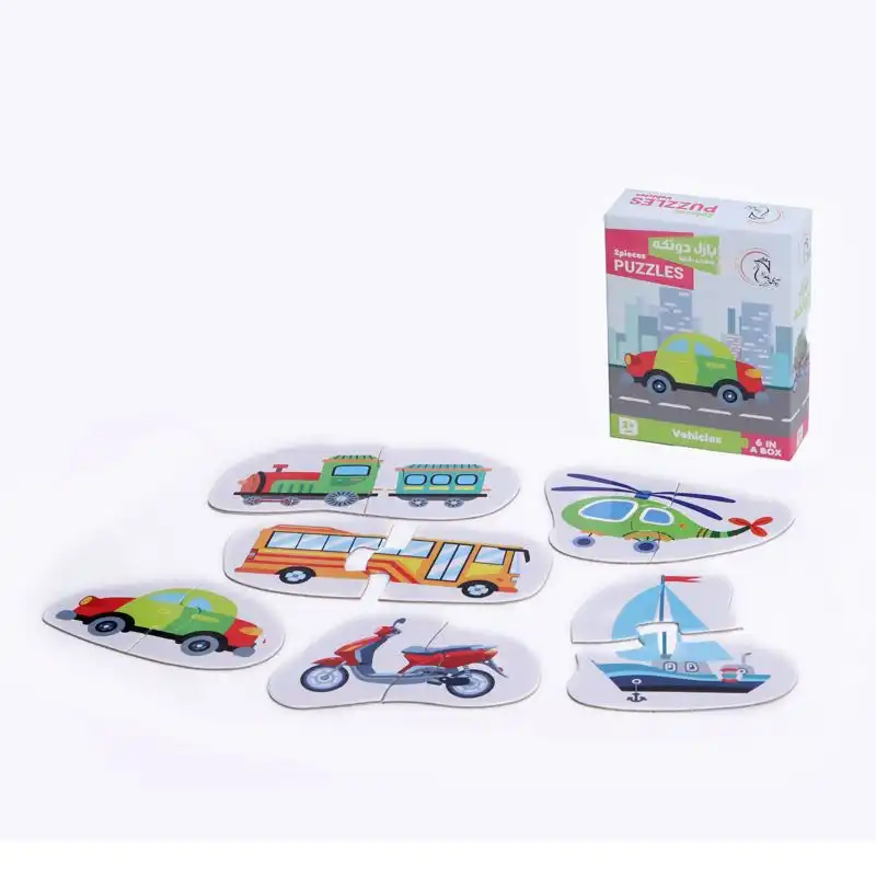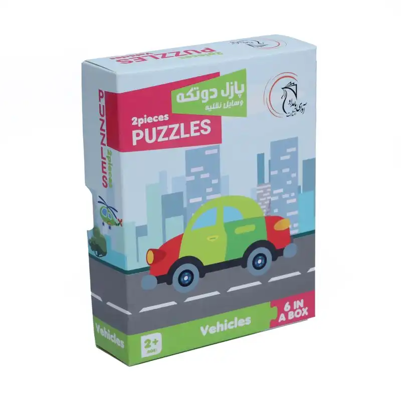 پازل‌های دو تکه که در شش مدل میوه‌ها، صیفی‌جات، وسایل نقلیه، حیوانات جنگل، حیوانات مزرعه و حیوانات دریایی با کیفیتی بسیار عالی، از جنس مقوای سخت با ماندگاری بالا و با طرح‌های چشم‌نواز برای کودکان نوپا تهیه و تولید شده‌اند، از بهترین انتخاب‌ها برای شروع حل پازل هستند.